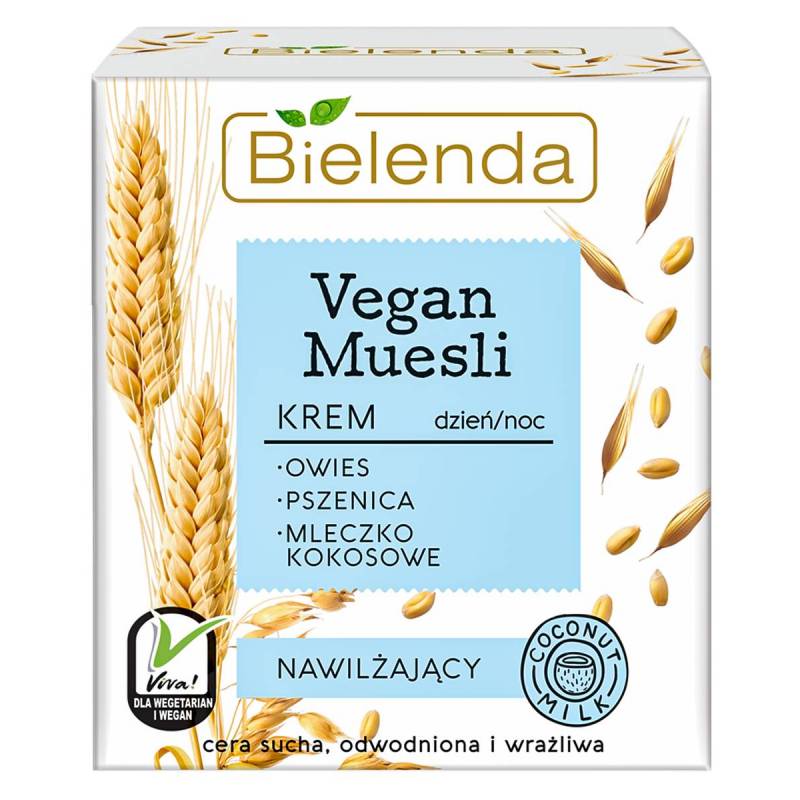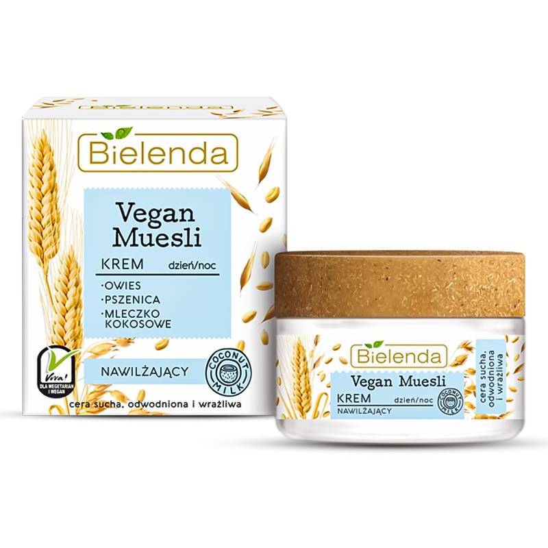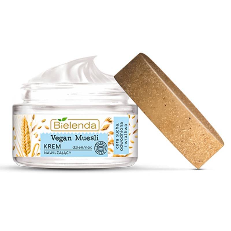 Krem nawilżający do cery suchej, odwodnionej i wrażliwej na dzień i na noc - Vegan Muesli - Bielenda